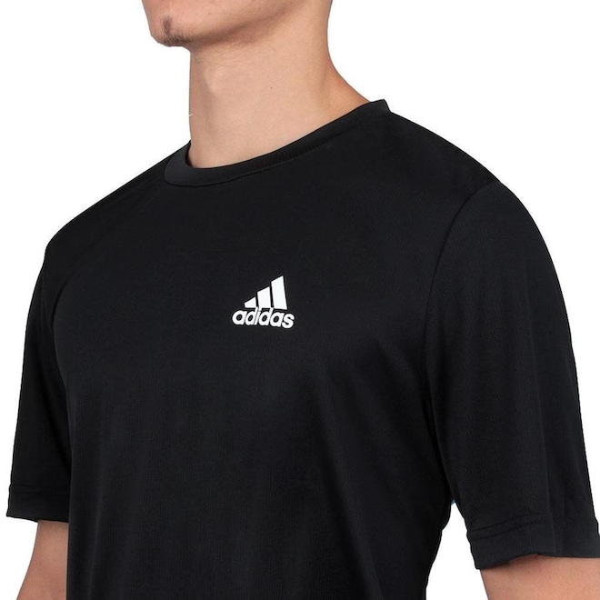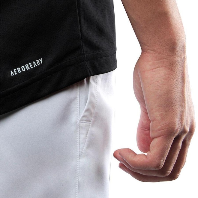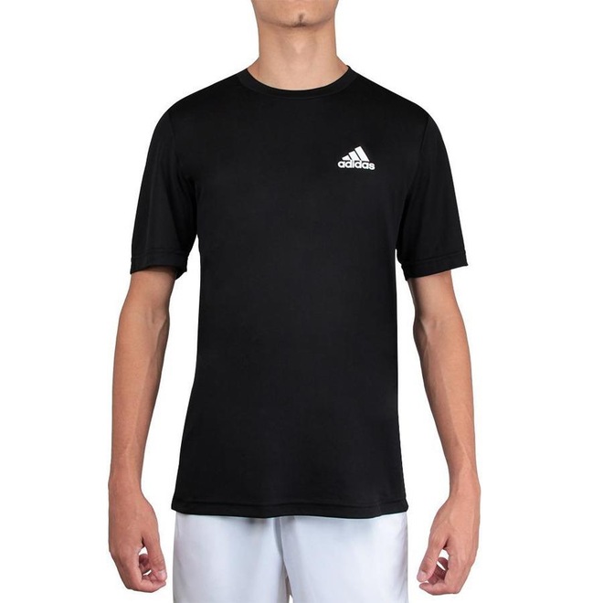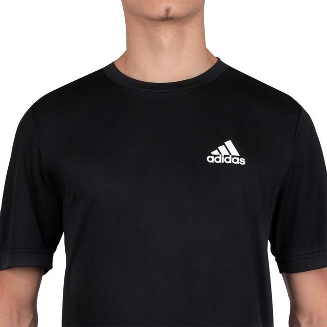 Conheça as Características da Camiseta Adidas Essentials Performance Preta - Perfil: Training - Material: 100% Poliéster - Detalhamento: Camiseta gola careca, mangas curtas, logo e escrita Adidas estampado na parte frontal na altura do busto do lado esquerdo, escrita Aeroready na parte de trás próximo da barra, barra traseira ligeiramente arredondada, caimento tradicional - Origem: Importado.