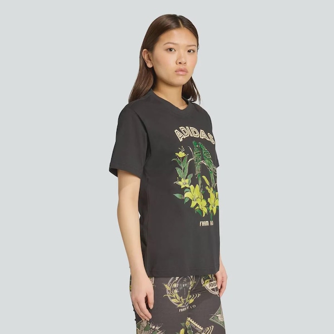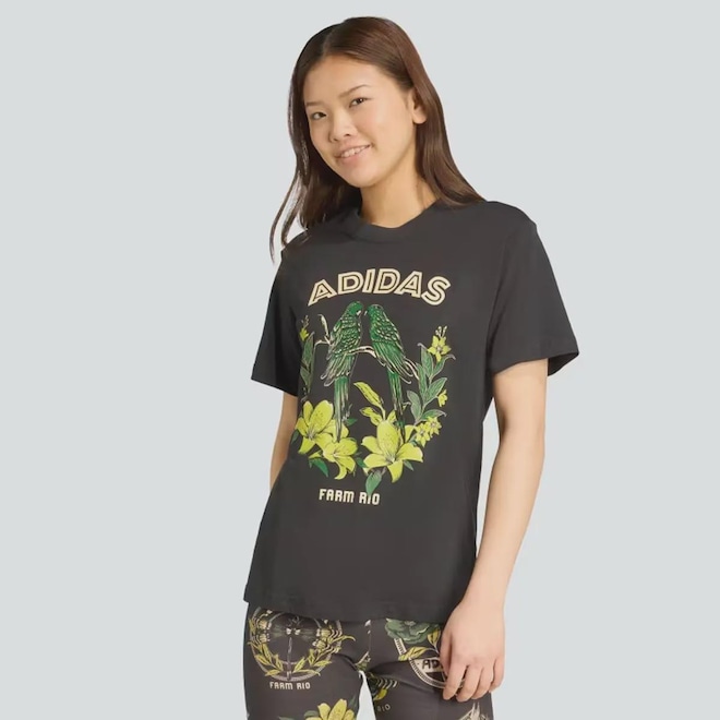 Composição: 100% Algodão Cor predominante: Preta Indicada para: Casual Origem: Importada Gênero: Feminina Logo: Estampada Manga: Curta Gola: Careca Dimensões aproximadas (A x L): PP: 61 x 44 cm P: 63 x 46 cm M: 65 x 48 cm G: 67 x 50 cm GG: 69 x 52 cm EG: 71 X 54 cm