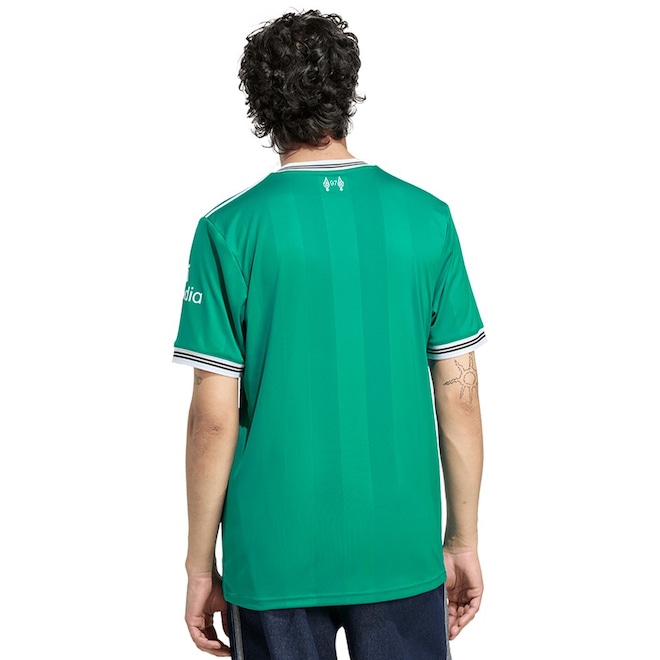 Mostre sua paixão e vista o orgulho dos Reds com a Camiseta Adidas Liverpool 3 FC 25/26 Masculina. Assinada pela Adidas, esta peça de terceiro uniforme traz um design moderno em tom de verde e detalhes sutis que homenageiam a rica tradição e história do Liverpool.