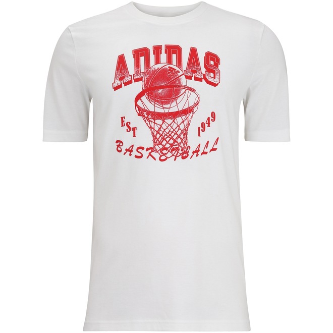 Demonstre seu favoritismo pelo esporte com essa confortável e estilosa Camiseta adidas Manga Curta Basquete Aworld Hoops.