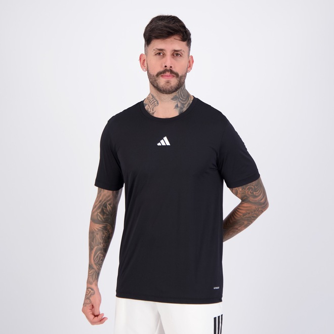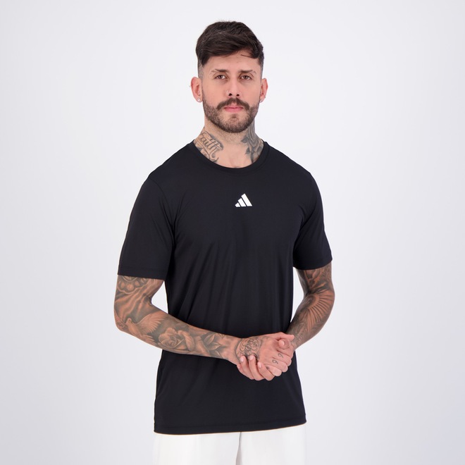 Tecnologia Aeroready: Sistema que controla o excesso de umidade do corpo, garantindo a rápida secagem do suor durante os exercícios. Composição: 100% Poliamida Cor predominante: Preta Indicada para: Treino Origem: Nacional Gênero: Masculino Logo: Estampada Manga: Curta Gola: Careca Dimensões aproximadas (A x L): PP: 70 x 50 cm P: 72 x 52 cm M: 74 x 54 cm G: 76 x 56 cm GG: 78 x 58 cm EG: 80 x 60 cm EEG: 82 x 62 cm