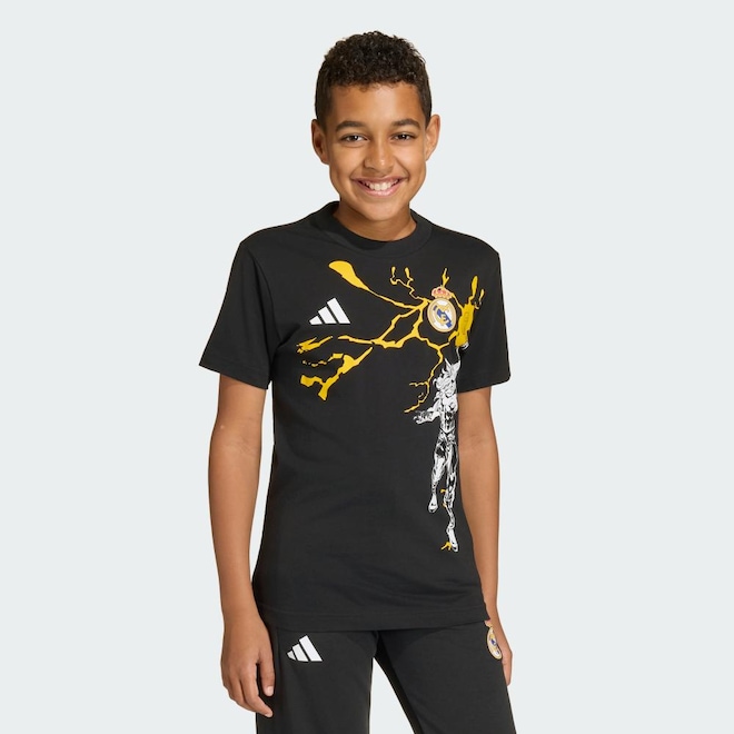Lendas do futebol encontram ícones de super-heróis com a camiseta adidas Real Madrid Avengers. Esta camiseta comemora a emocionante parceria entre Real Madrid e Avengers da Marvel, trazendo um toque de mágica dos quadrinhos para o campo de futebol. A camiseta é feita de algodão macio, garantindo conforto para as crianças durante as atividades escolares ou enquanto torcem pelo seu time favorito. O modelagem padrão e o design com gola redonda oferecem um visual clássico, enquanto as estampas arrojadas inspiram os jovens fãs a sonhar alto. Deixe seu filho abraçar seu herói interior e mostrar seu amor pelo futebol e pelos super-heróis com esta peça de destaque da adidas.