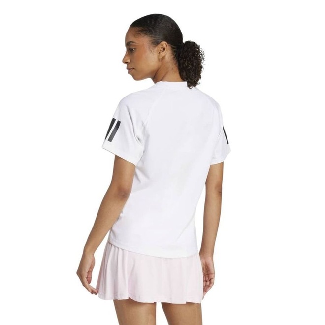 A Camiseta Adidas Tennis Club 3 Stripes Feminina foi desenvolvida para elevar sua performance nas partidas de tênis, oferecendo liberdade total de movimento graças ao design FreeLift, que facilita os voleios e movimentos rápidos em quadra. Confeccionada em poliéster reciclado, apresenta tecido leve com tecnologia CLIMACOOL, que mantém o corpo seco e confortável mesmo durante jogos intensos. As icônicas Três Listras nas mangas completam o visual esportivo, garantindo estilo e autenticidade adidas.