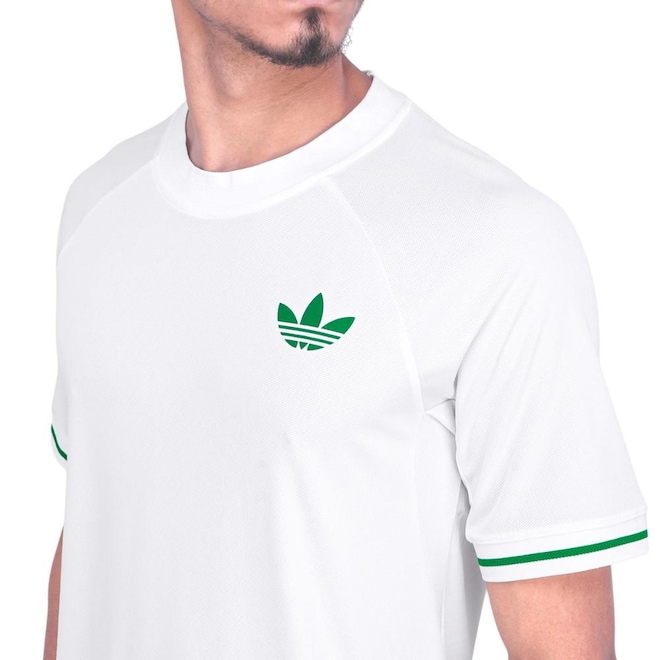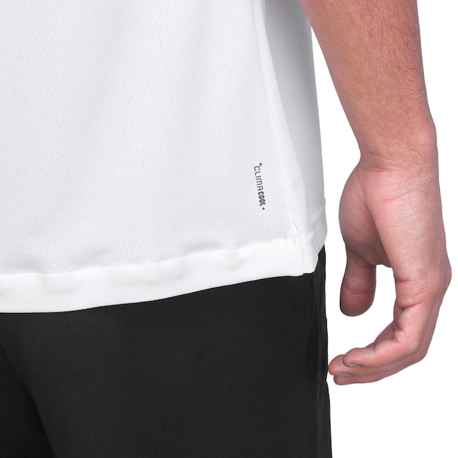 - Detalhamento: Gola redonda e mangas curtas, com o logo Adidas no peito, ao lado esquerdo. As listras nas mangas adicionam estilo ao design, enquanto os microfuros no tecido aumentam a respirabilidade, ajudando a manter o corpo fresco mesmo nos dias mais quentes. Ideal para quem busca conforto e personalidade no visual. A escrita Climacool nas costas, próxima à barra, completam o look;