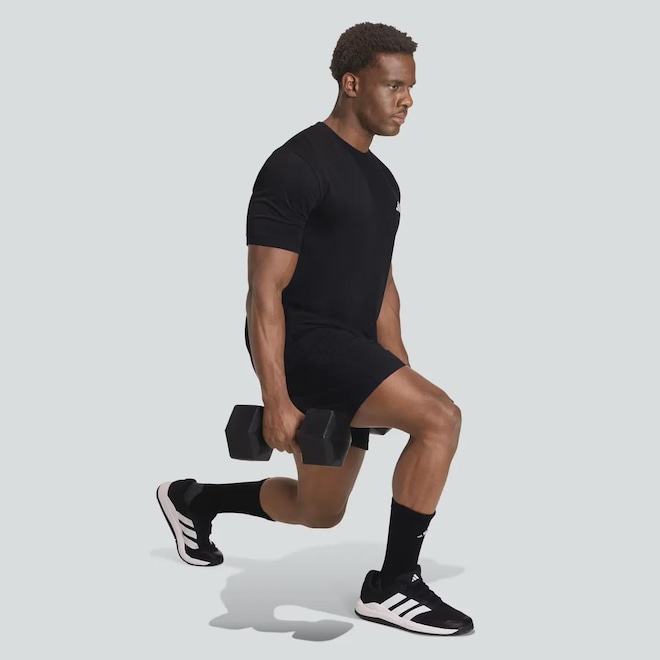 Composição: 70% Poliéster e 30% Algodão Cor predominante: Preta Origem: Importada Indicada para: Treino Gênero: Masculino Logo: Estampada Manga: Curta Gola: Careca Dimensões aproximadas (A x L): P: 69 x 50 cm M: 72 x 54 cm G: 74 x 58 cm GG: 75 x 63 cm EG: 79 x 69 cm