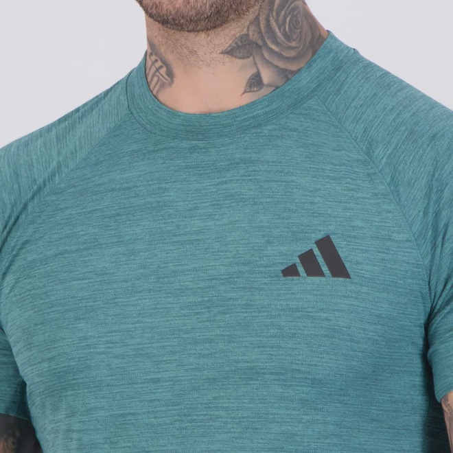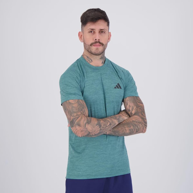 Tecnologia Climacool®: Tecnologia no tecido que se encarrega da gestão da ventilação e umidade do seu corpo, proporcionando conforto e performances excelentes, ideal para prática de exercícios. Composição: 92% poliéster e 8% elastano Cor predominante: Verde Indicado para: Treino Gênero: Masculino Origem: Importada Logo: Estampada Gola: Careca Manga: Curta Dimensões aproximadas (A x L): PP: 68 x 47 cm P: 70 x 49 cm M: 72 x 51 cm G: 74 x 53 cm GG: 76 x 55 cm EG: 78 x 57 cm