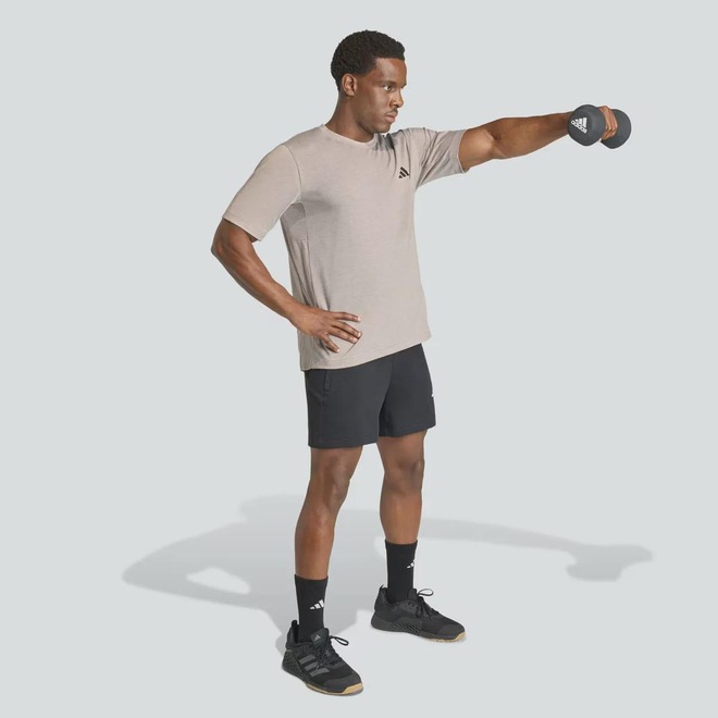 Composição: 70% Poliéster e 30% AlgodãoCor predominante: CinzaIndicado para: TreinoGênero: MasculinoOrigem: ImportadaLogo: EstampadaManga: CurtaGola: CarecaDimensões aproximadas (A x L):M (M): 72 x 54 cmG (L): 74 x 59 cmEG: 81 x 70 cm