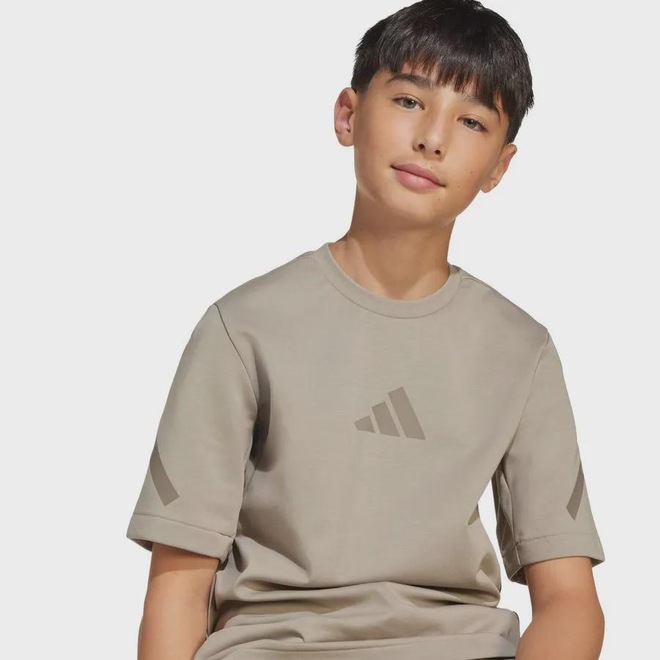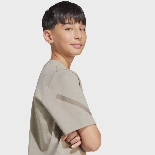 Fique confortável a cada chute, gol e treino. Perfeita para manter-se ativo ou relaxar, esta camiseta infantil adidas tem estrutura macia em interlock e modelagem folgada espaçosa. A estampa emborrachada fosca inspirada nas linhas do campo de jogo mostra sua paixão pelo esporte aonde quer que ele te leve. Tecido em três camadas e ombros caídos.