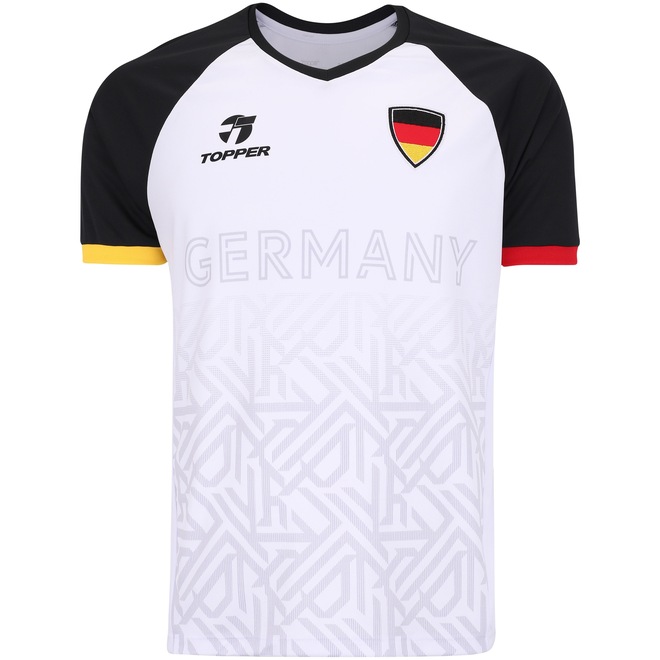 Nas cores da seleção, a Camisa Alemanha Topper é perfeita para vestir a torcida em dias de jogos e outras ocasiões.