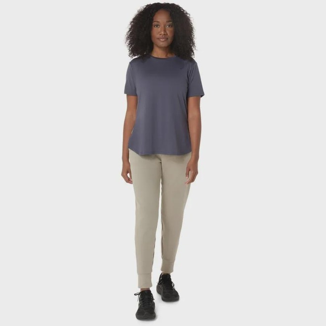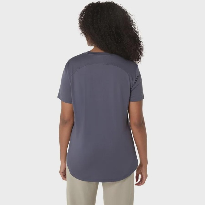 A camiseta de manga curta FLEX STRETCH é funcional para o uso diário. Confeccionada em tecido de secagem rápida e toque macio, foi pensada para oferecer bem-estar durante os treinos. O design apresenta estampa Enso nas costas e a bainha aredondada que evocam sensações de calma e equilíbrio, adicionando um toque feminino e elegante à peça. As fendas laterais profundas contribuem para facilitar a movimentação. Confeccionada em tecido macio e de toque suave, esta camiseta conta com propriedades de secagem rápida e elasticidade. A gola é feita com o próprio tecido da peça, e o design apresenta estampa Enso nas costas, além de bainha arredondada que acrescenta um toque delicado. A fenda lateral profunda permite maior liberdade de movimento, enquanto o caimento regular se adapta ao corpo. Além disso, pelo menos 50% do material principal do vestuário é feito com conteúdo reciclado, contribuindo para a redução do desperdício e das emissões de carbono.-