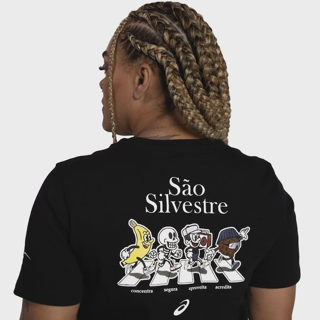 A São Silvestre é a corrida de rua mais tradicional da América do Sul, celebrando 100 anos de história em 2025. A ASICS tem a honra de apresentar uma coleção comemorativa que une a tecnologia com a energia desta prova centenária que, desde 1925, reúne atletas nas ruas de São Paulo.Em modelo oversized, a CAMISETA JOURNEY SÃO SILVESTRE está disponível em branco ou em preto, com interpretação contemporânea dos personagens São Silvestre, apresentando elementos icônicos da maratona como fantasias clássicas, a cultura do hip hop da região e o brigadeiro. As palavras "Concentra”, “Segura”, “Aproveita” e “Acredita" na parte posterior também fazem alusão às etapas da corrida, com a logo na manga. 100% Algodão.