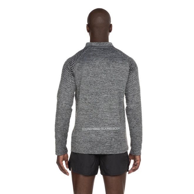 A camiseta ideal para suas corridas ou treinos outdoor, possui mangas longas e gola alta com ajuste frontal por zíper.