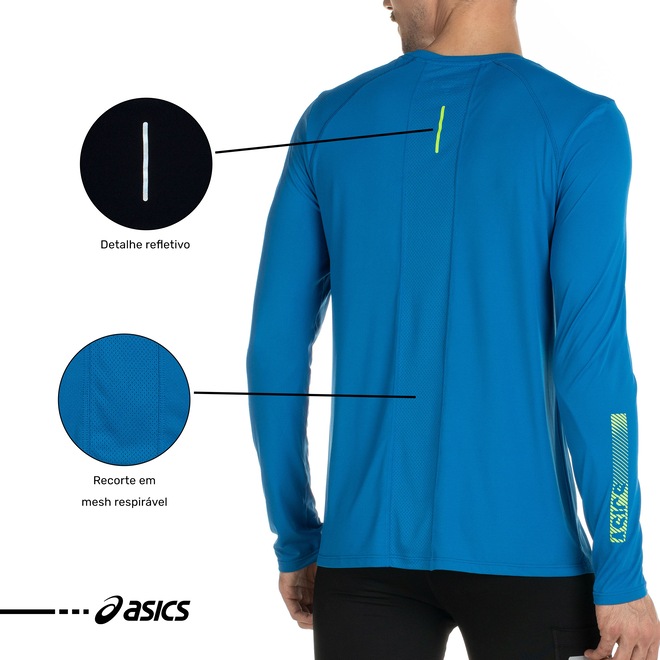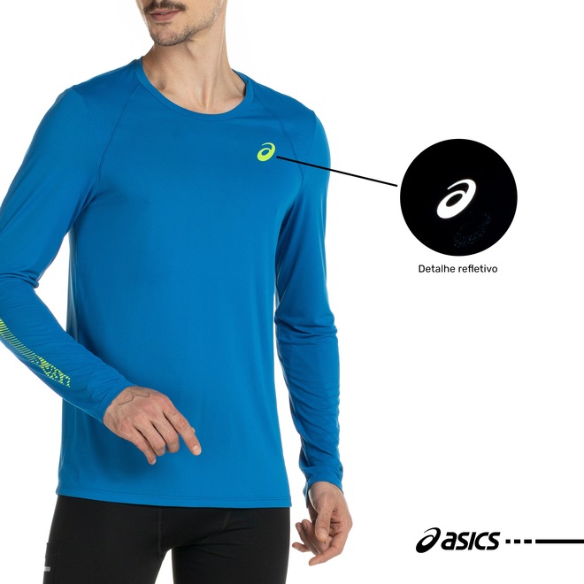A camiseta ASICS tem manga longa, gola careca e seu tecido em poliamida garante ótimo caimento.