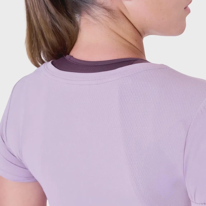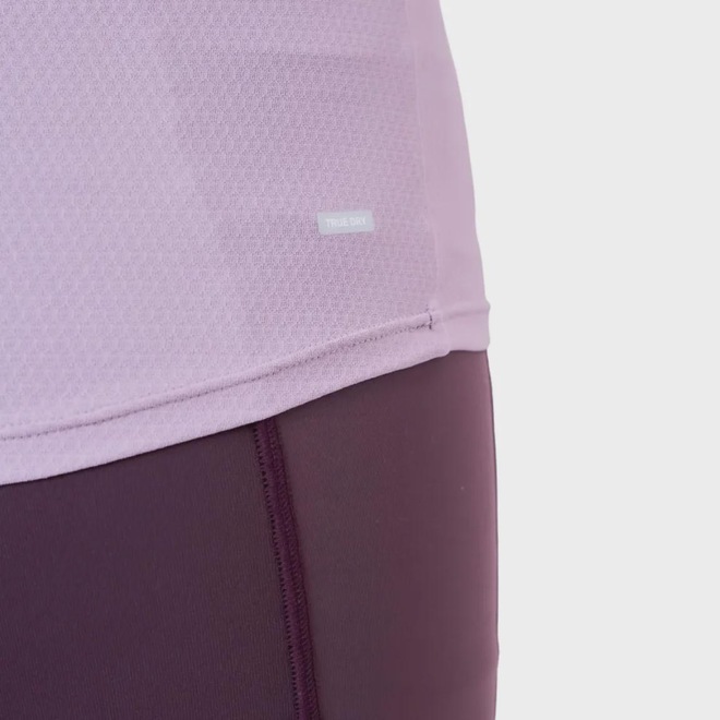 Camiseta feminina leve e de secagem rápida, ideal para corrida e treinos. Possui tecnologia True-Dry®, proteção antimicrobiana contra odores e modelagem levemente alongada com excelente caimento. Conforto térmico e zero atrito para máximo desempenho.
