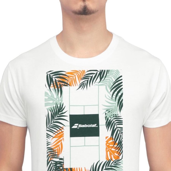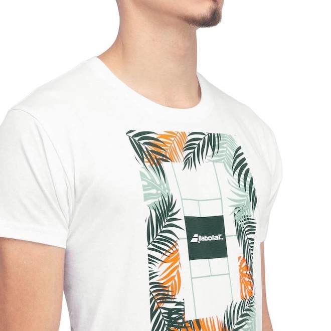 - Detalhamento: Camiseta gola careca, mangas curtas, tecido leve e confortável, toque suave, logo Babolat na manga direita, estampa em cores contrastantes centralizada na altura do peito;