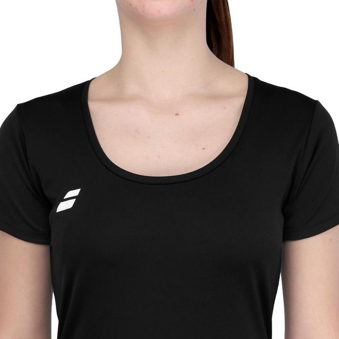 Descrição da Camiseta Babolat Play Cap Sleeve Top Preta e Branca