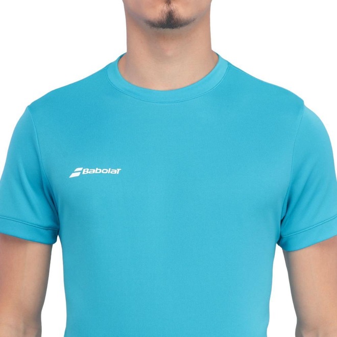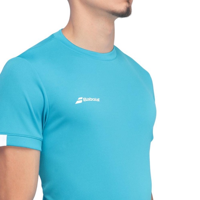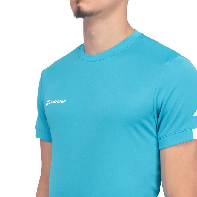 - Detalhamento: Camiseta gola careca, mangas curtas, tecido leve e confortável, toque suave, resistente e fácil de lavar e secar, detalhe na cor branca em ambas as mangas e na manga esquerda temos o logo Babolat, escrita