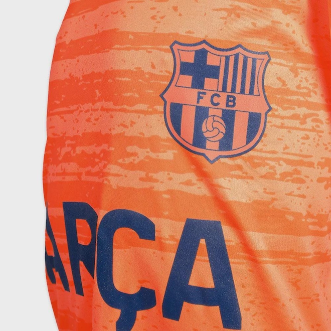 A camisa do Barça, linha Chalkboard, é perfeita para os loucos pelo Barça vibrarem com total liberdade e estilo. Confeccionada em poliéster, a peça possui design na cor laranja, além de carregar o escudo do time estampado em destaque na região do tórax.