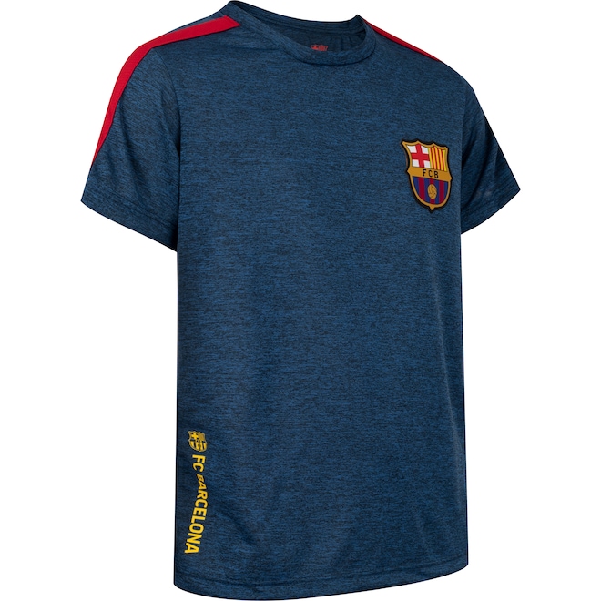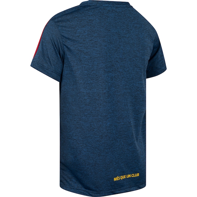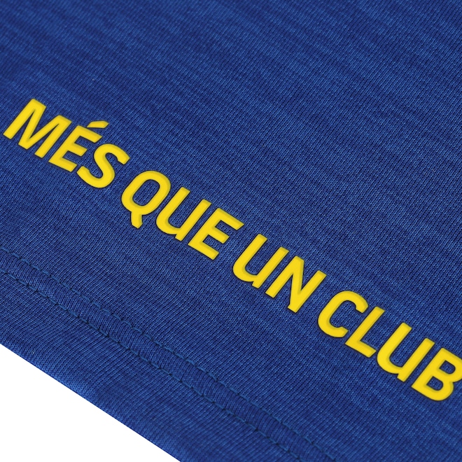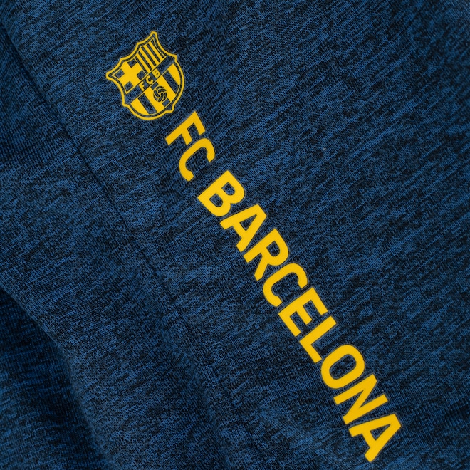 Possui estampa mescla com o escudo do “Barça” em destaque valorizando o visual esportivo.