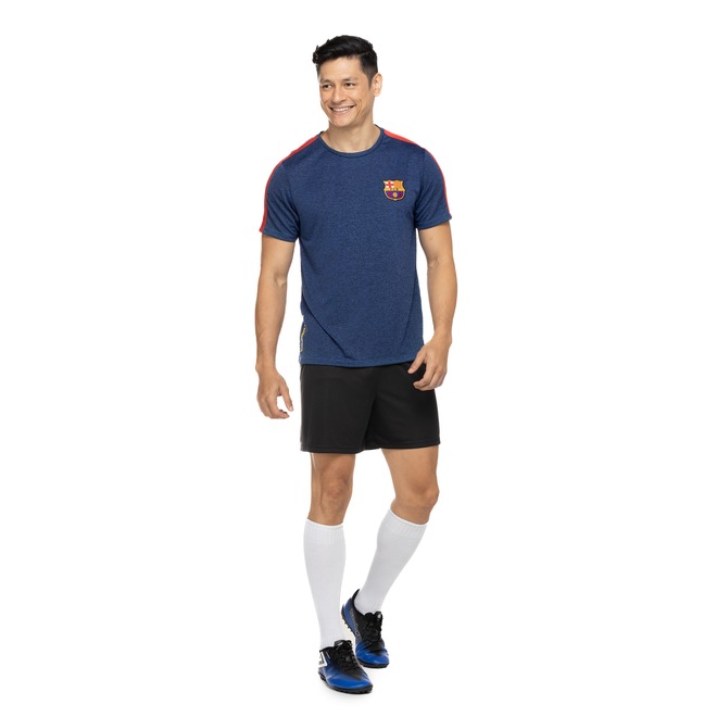 A camiseta Barcelona masculina possui manga curta, com gola careca e tira interna em tecido que ajuda a diminuir o atrito de contato com a costura.