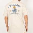 Camiseta Billabong feita em modelagem Corefit, meia malha, estampa aplicada na frente e costas e etiqueta da marca aplicada na lateral lado esquerdo de quem veste.