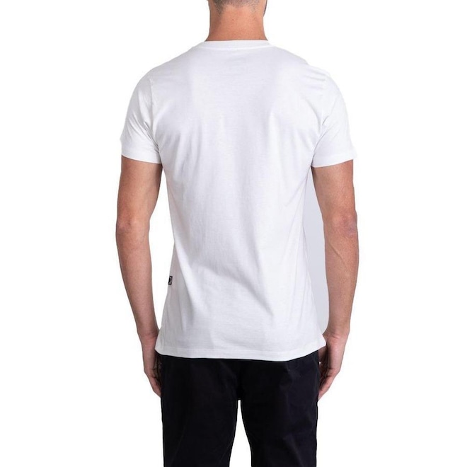 Camiseta de malha penteada de algodão, fio 30/1, manga curta, estampa frontal, modelagem core fit (regular) e etiquetas personalizadas.
