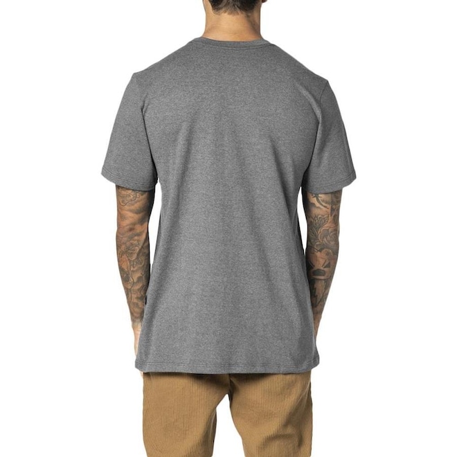 Camiseta de malha penteada de algodão fio 30/1, com estampa frontal, modelagem core fit (regular) e etiqueta personalizada.