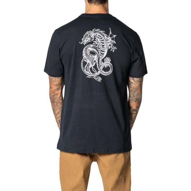 Camiseta Billabong de malha penteada de algodão fio 30/1 com estampa frontal e traseira, modelagem core fit (regular) e etiquetas personalizadas .