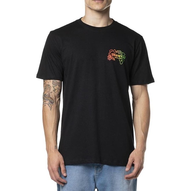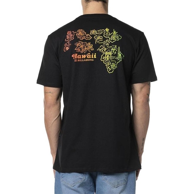 Camiseta Billabong feita em meia malha de algodão 30.1 penteada, modelagem core fit, com estampa localizada no peito e costas, silk interno e etiquetas personalizadas.