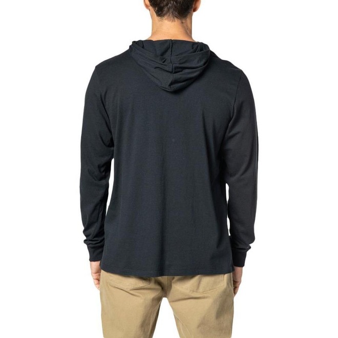 Camiseta Billabong manga longa de malha penteada de algodão fio 30/1 com capuz, estampa frontal, etiquetas personalizadas, feita em nossa modelagem core fit e etiquetas personalizadas.