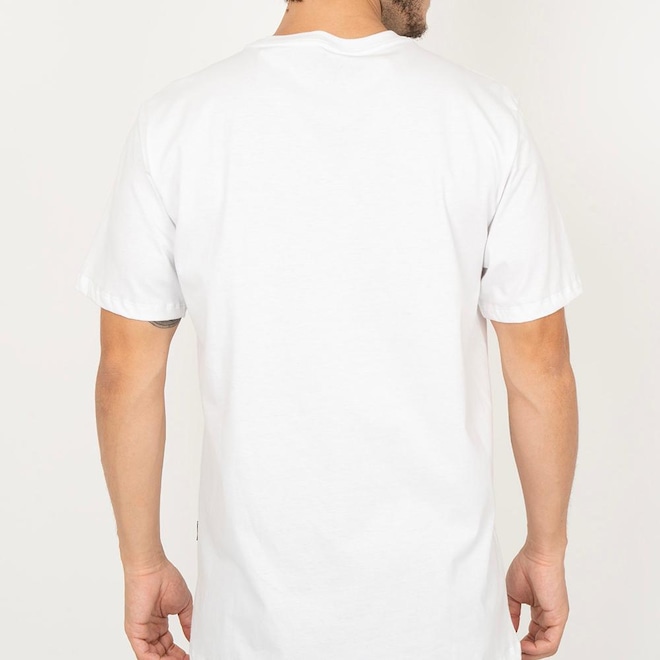 Camiseta Billabong feita em modelagem Core fit, meia malha, estampa aplicada na frente e etiqueta da marca aplicada na lateral do lado esquerdo de quem veste.