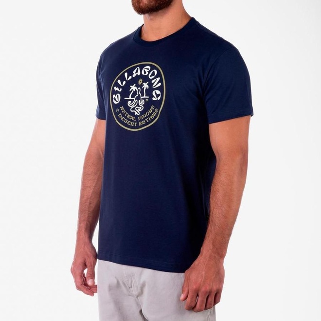 Camiseta Billabong de malha penteada de algodão fio 30/1 com estampa frontal, modelagem core fit (regular) e etiqueta personalizada.