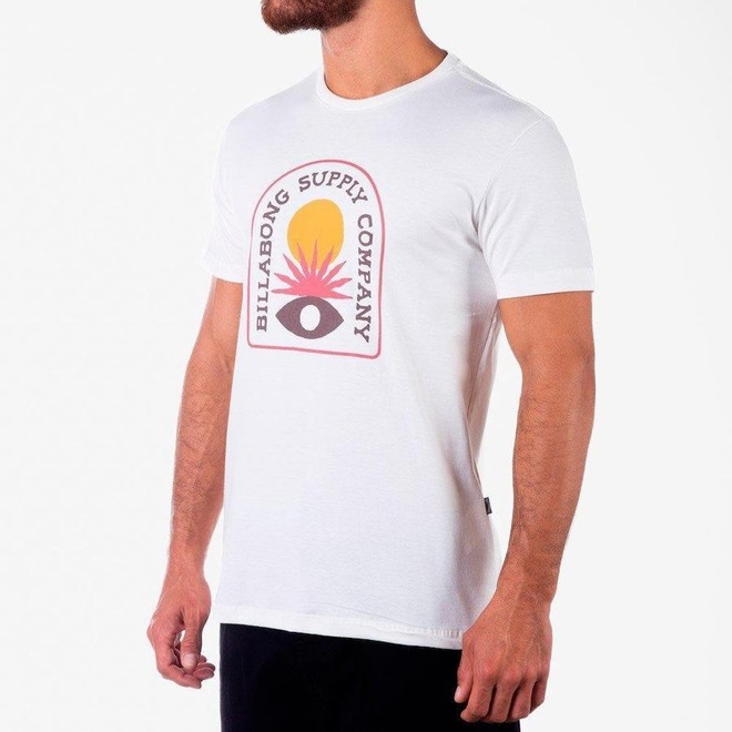 Camiseta Billabong de malha penteada de algodão fio 30/1 com estampa frontal, modelagem core fit (regular) e etiqueta personalizada.