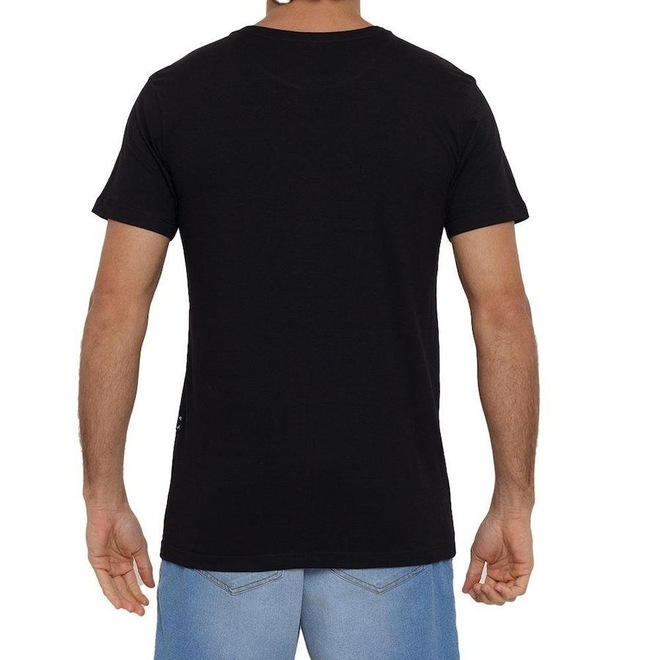 Camiseta de malha penteada de algodão fio 30/1 com estampa frontal modelagem core fit (regular) e etiqueta personalizada.