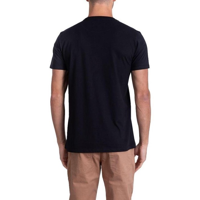 Camiseta Billabong de malha penteada de algodão fio 30/1 com estampa frontal, modelagem core fit (regular) e etiqueta personalizada.