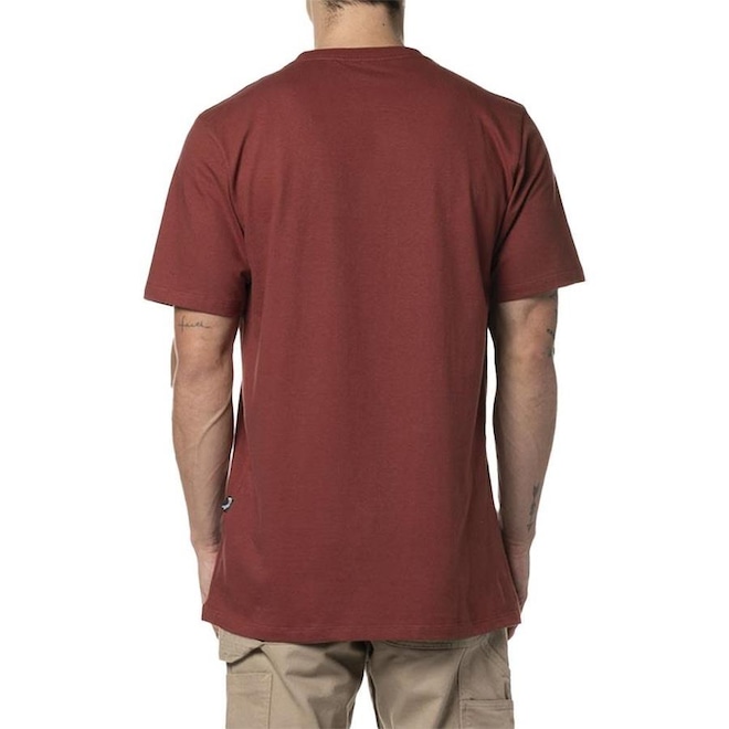 Camiseta Billabong com modelagem core fit, meia malha de algodão 30.1 penteada, com bordado direto aplicado no peito, silk interno e etiquetas personalizadas.