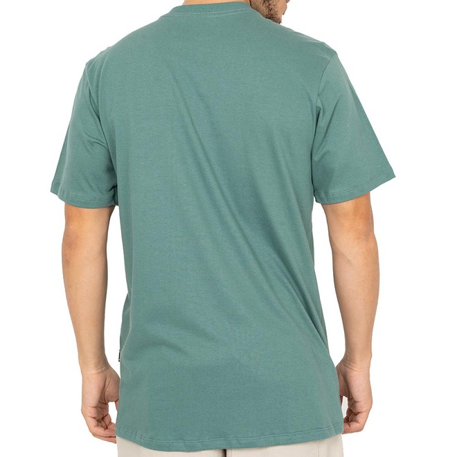 Camiseta Billabong feita em modelagem Core fit, meia malha, estampa aplicada no peito e etiqueta da marca aplicada na lateral do lado esquerdo de quem veste.