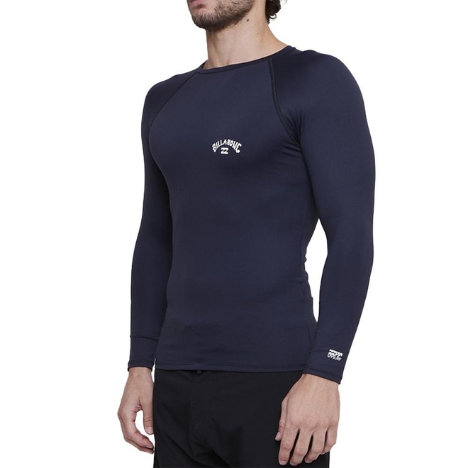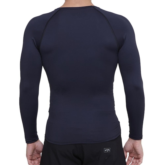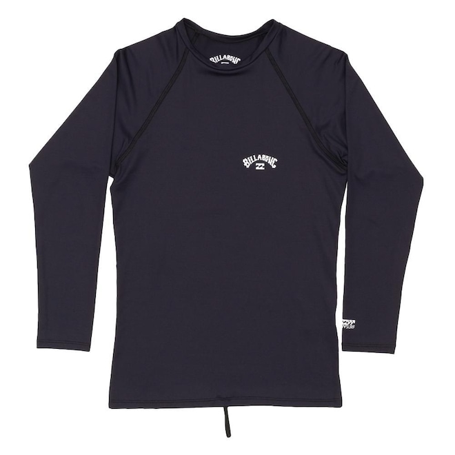 Lycra Billabong Manga Longa Raglan, com estampa no peito e na manga, silk interno e etiquetas personalizadas.