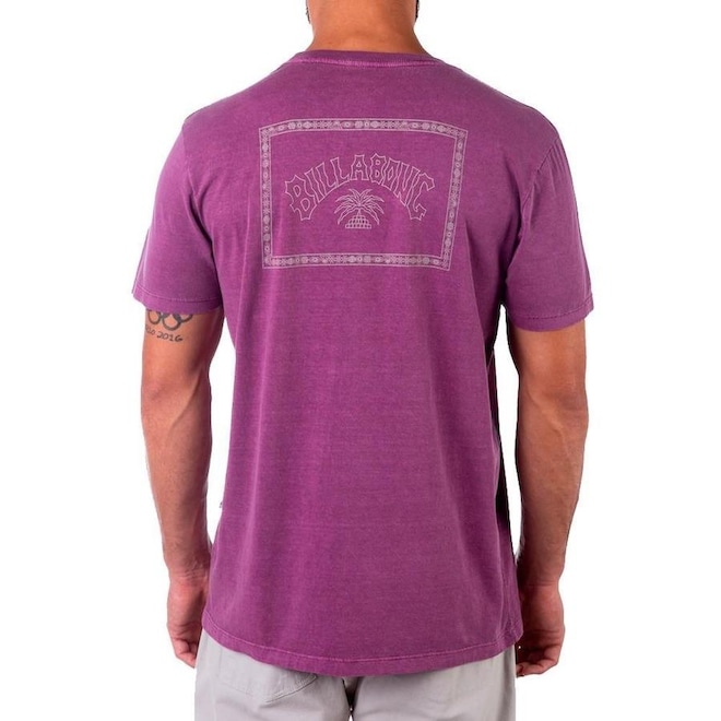 Camiseta Billabong manga cura de maia malha fio 30/1, lavanderia efeito estonada, com estampa frente e costas, modelagem core fit (regular) e etiquetas personalizadas.