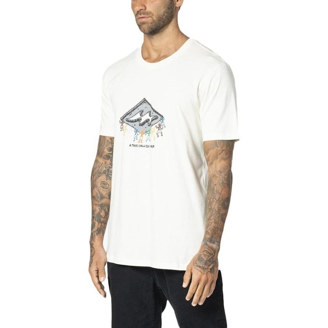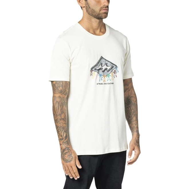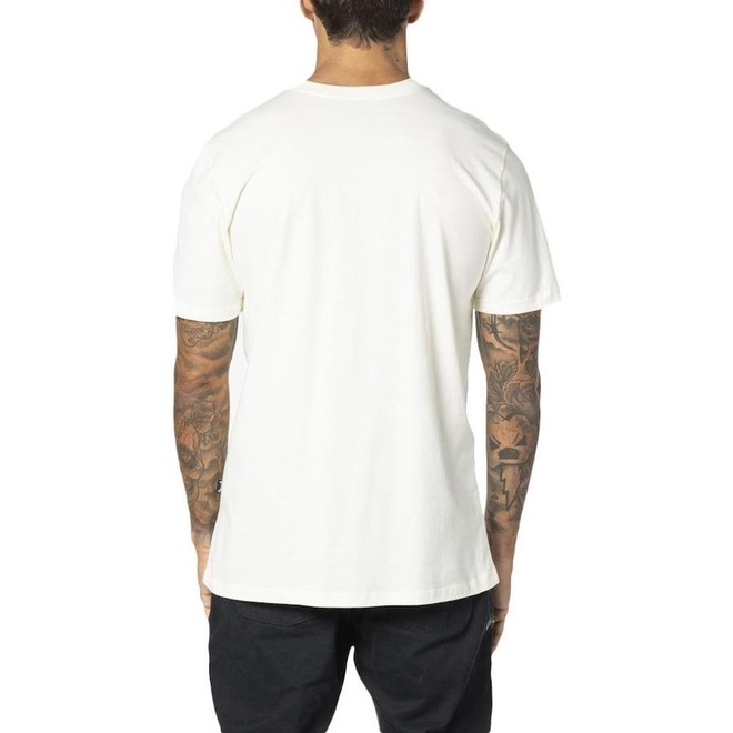 Camiseta de malha penteada de algodão fio 30/1, com estampa frontal, modelagem core fit (regular) e etiqueta personalizada.