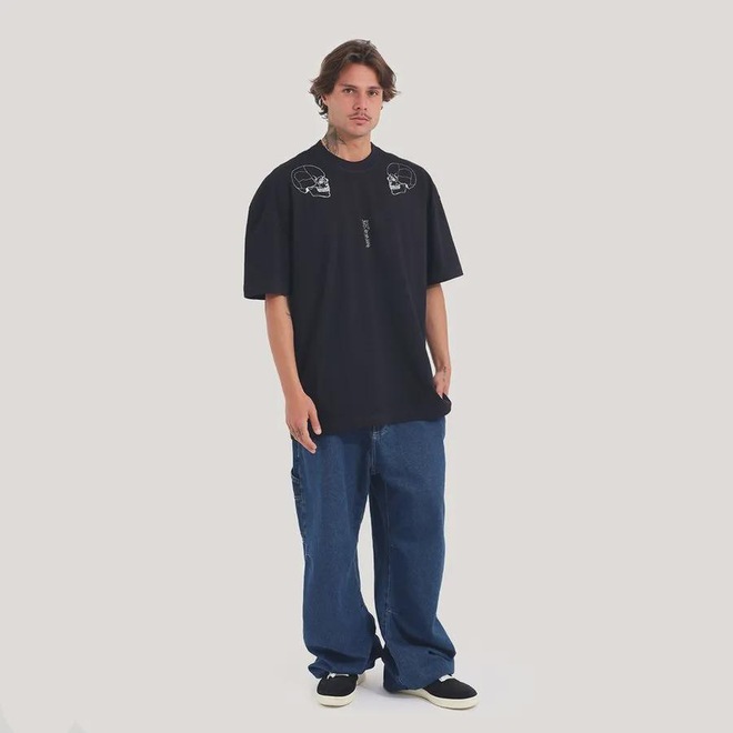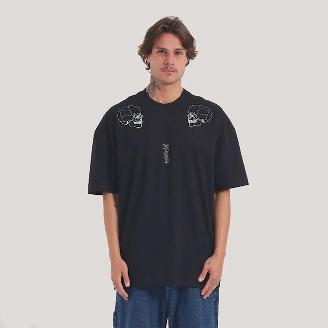 · Estampa frontal caveira localizada nos dois ombros.