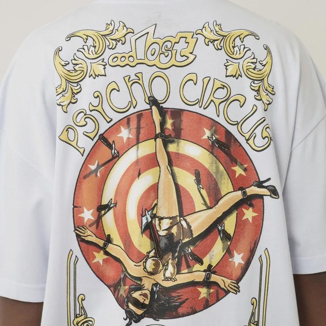 - Sobre o produto - Especificações do produto: - · Linha Psycho Circus. - · Modelagem box fit. - · Estampa frontal Lost no centro. - · Reforço de gola. - · Etiqueta costurada na barra frontal a 1 cm. - · Estampas costas Psycho Circus Freak Show. - · Etiqueta Lost Psycho aplicada na barra costas. - · Tag personalizado Psycho Circus X …Lost. - Composição: - 100% Algodão. - O circo sempre foi um lugar de fascínio e mistério, onde o riso se mistura ao assombro e cada espetáculo pode ser tão mágico quanto caótico. Inspirada nesse universo de exageros, ilusões e personagens icônicos, a Lost apresenta a linha especial Psycho Circus — uma coleção que transforma o bizarro em arte, o surreal em estilo e o desconhecido em desejo. Cores vibrantes, estampas impactantes e um toque sombrio criam o equilíbrio perfeito entre o espetáculo e a rebeldia.