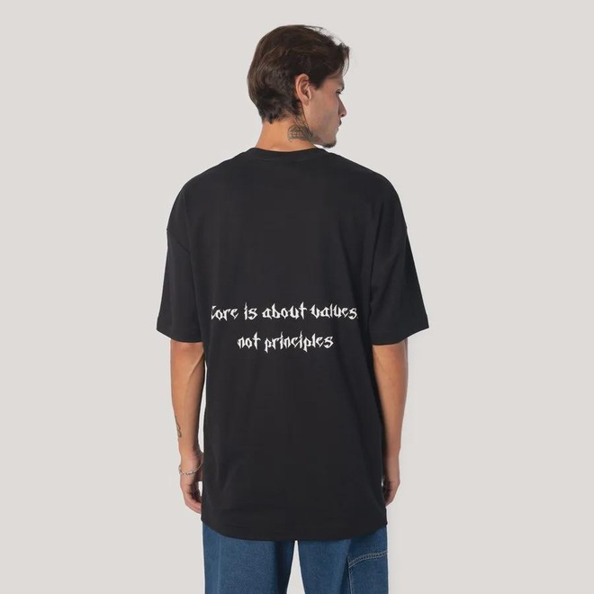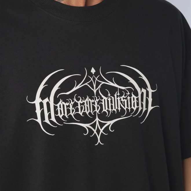 Herança da raiz californiana da MCD, uma linha que sempre está presente nas coleções, dessa vez com uma inspiração em tipografias de bandas de metal e estética gótica.ref: M17BPT