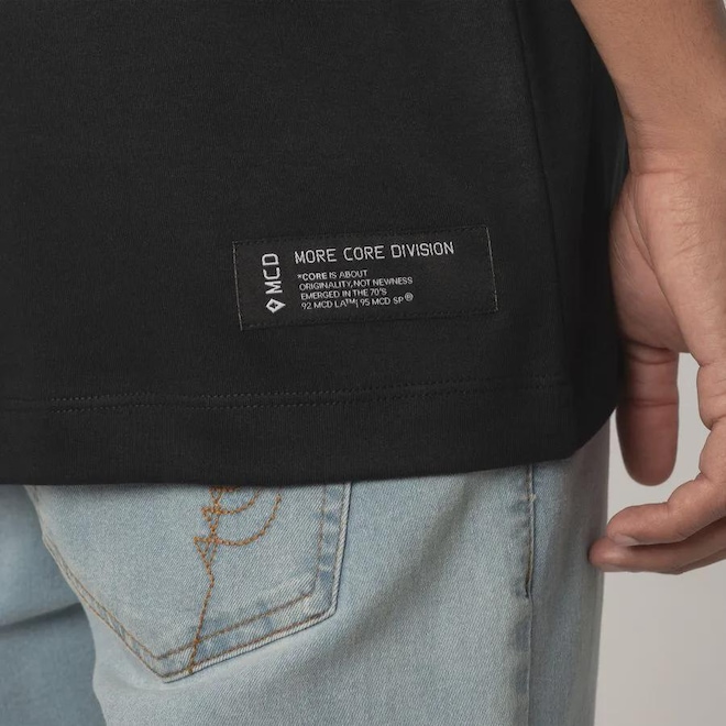 MCD em primeiro plano, essa linha trabalha todas as versões de logos, tipografias e design voltados para o lado institucional da marca. Uma locomotiva que carrega sempre toda a coleção, temas e linhas. MORE CORE DIVISION.ref: M17CR7