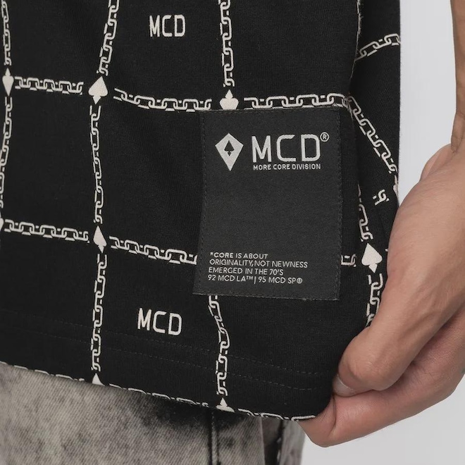 MCD em primeiro plano, essa linha trabalha todas as versões de logos, tipografias e design voltados para o lado institucional da marca. Uma locomotiva que carrega sempre toda a coleção, temas e linhas. MORE CORE DIVISION.