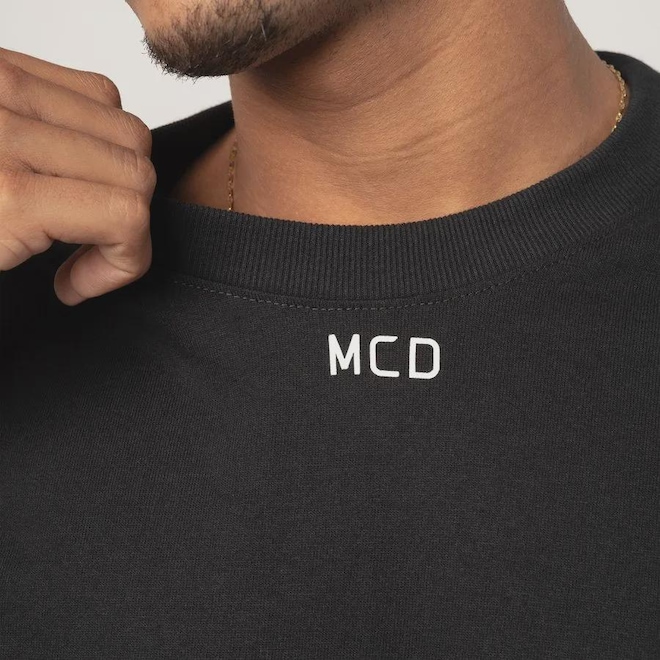 · Estampa em relevo MCD abaixo da gola.
