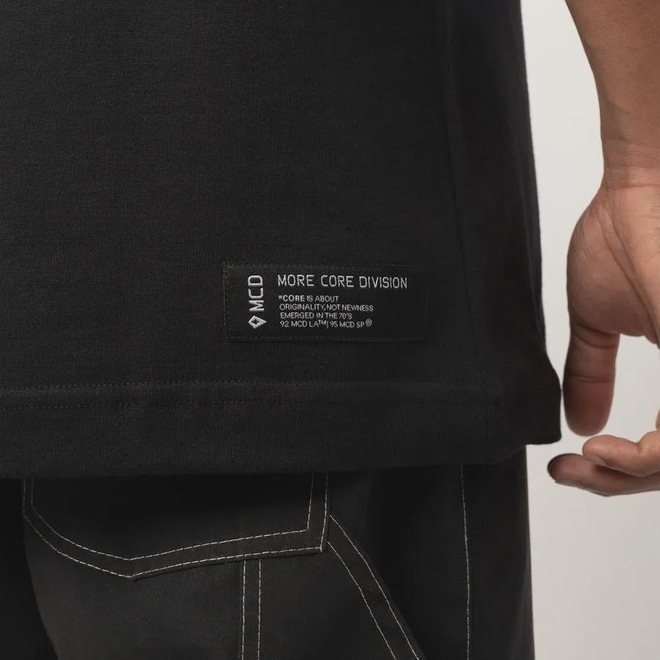 · Etiqueta More Core horizontal bordada na barra costas.