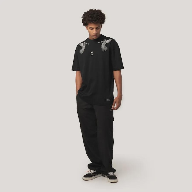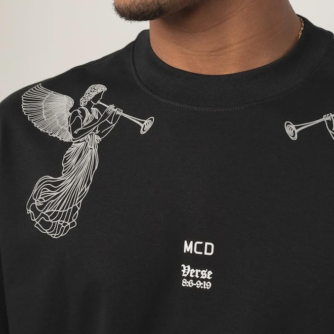 · Etiqueta More Core horizontal bordada na barra frontal.