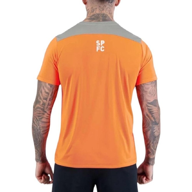 Composição: 100% Poliéster Cor predominante: Laranja Indicado para: Casual Gênero: Masculino Escudo: Estampado Clube: São Paulo Origem: Nacional Manga: Curta Gola: Careca Dimensões aproximadas (A x L): P: 68 x 52 cm M: 70 x 54 cm G: 72 x 56 cm GG: 74 x 58 cm EG: 76 x 60 cm