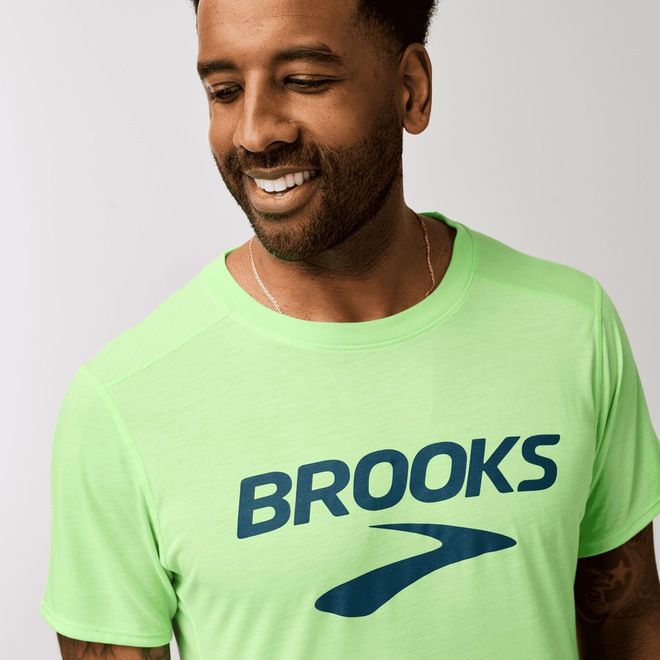 Para manter suas peças Brooks sempre com boa aparência e desempenho, lave-as separadamente na máquina antes de usar, evite o uso de amaciantes e seque em temperatura baixa.